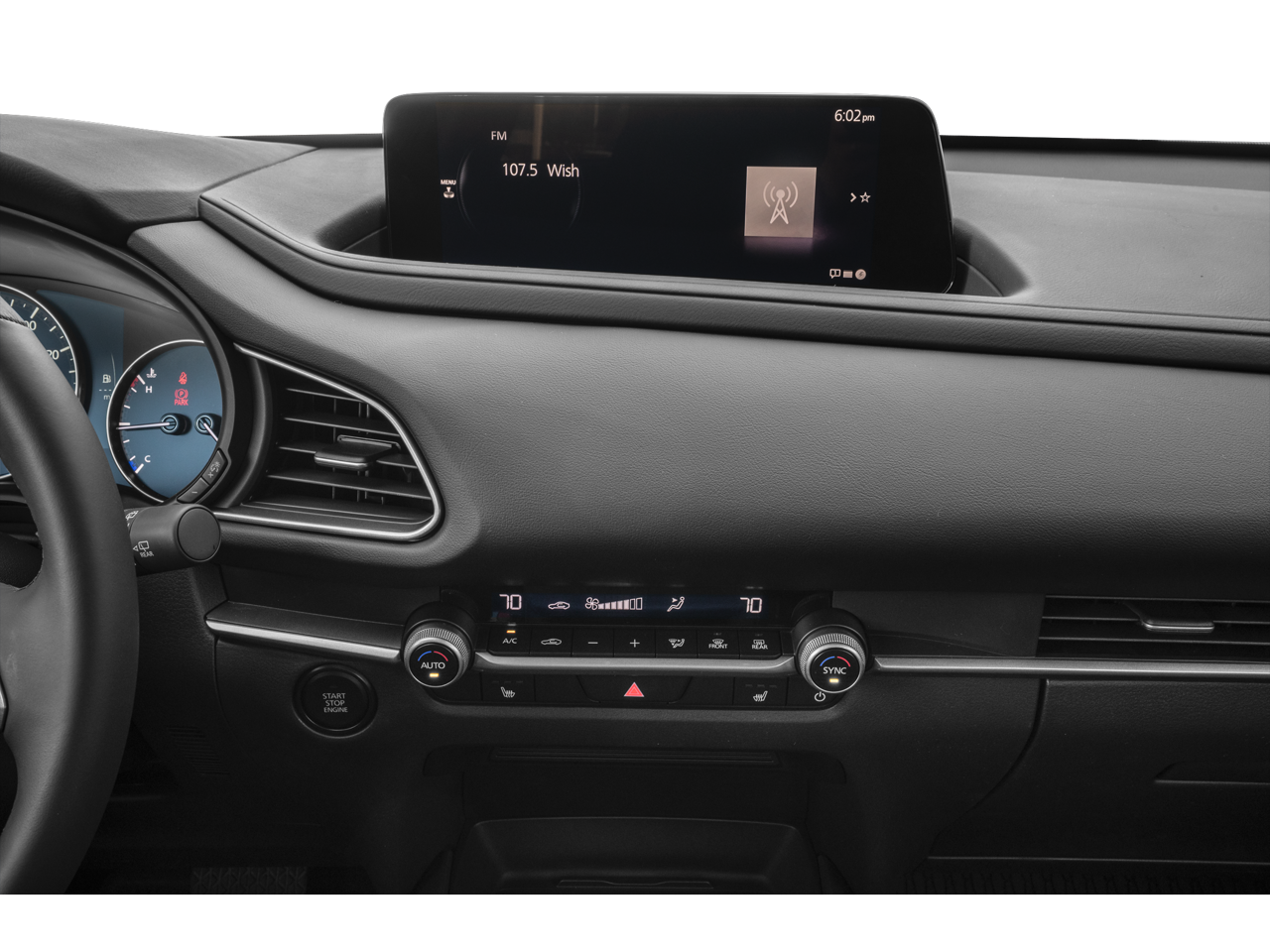 - Radio: AM/FM Audio System -inc: 8-speakers w/Mazda Harmonic Acoustics, 10.25" full-color center display w/touchscreen functionality in AA/CP, Alexa Built-in, Apple CarPlay/Android Auto integration (wireless), Bluetooth® hands-free phone and audio capability, USB type-C audio inputs (2 ports), Qi wireless charger and steering wheel-mounted audio controls
