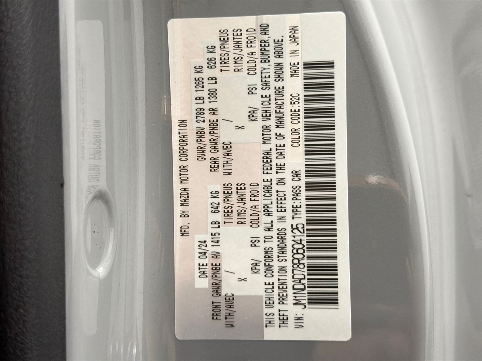 - Vehicle Name: Mazda MX-5 Miata